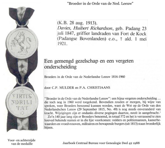 2. Kanselarij der Nederlandse Orden, 1815-1993: August Richardson Davies, Orde van Oranje-Nassau, Zilver; Thomas Richardson Davies (1886-1955), Orde van Orangje Nassau, Ridder.