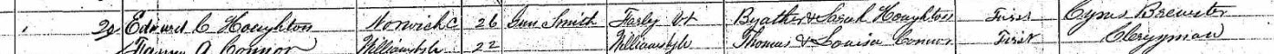 - Marriage*: Edward C. Houghton married Fannie A. Conner on May 20, 1863 at Williamsburg, Hampshire Co., MA, USA, son of Byather and Sarah Houghton; ages 26 and 22.4,3