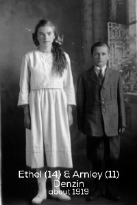 In the obituary of Ethel Patterson who died 16 December 1954, her brother, Arnley Denzin, was listed as a survivor.15