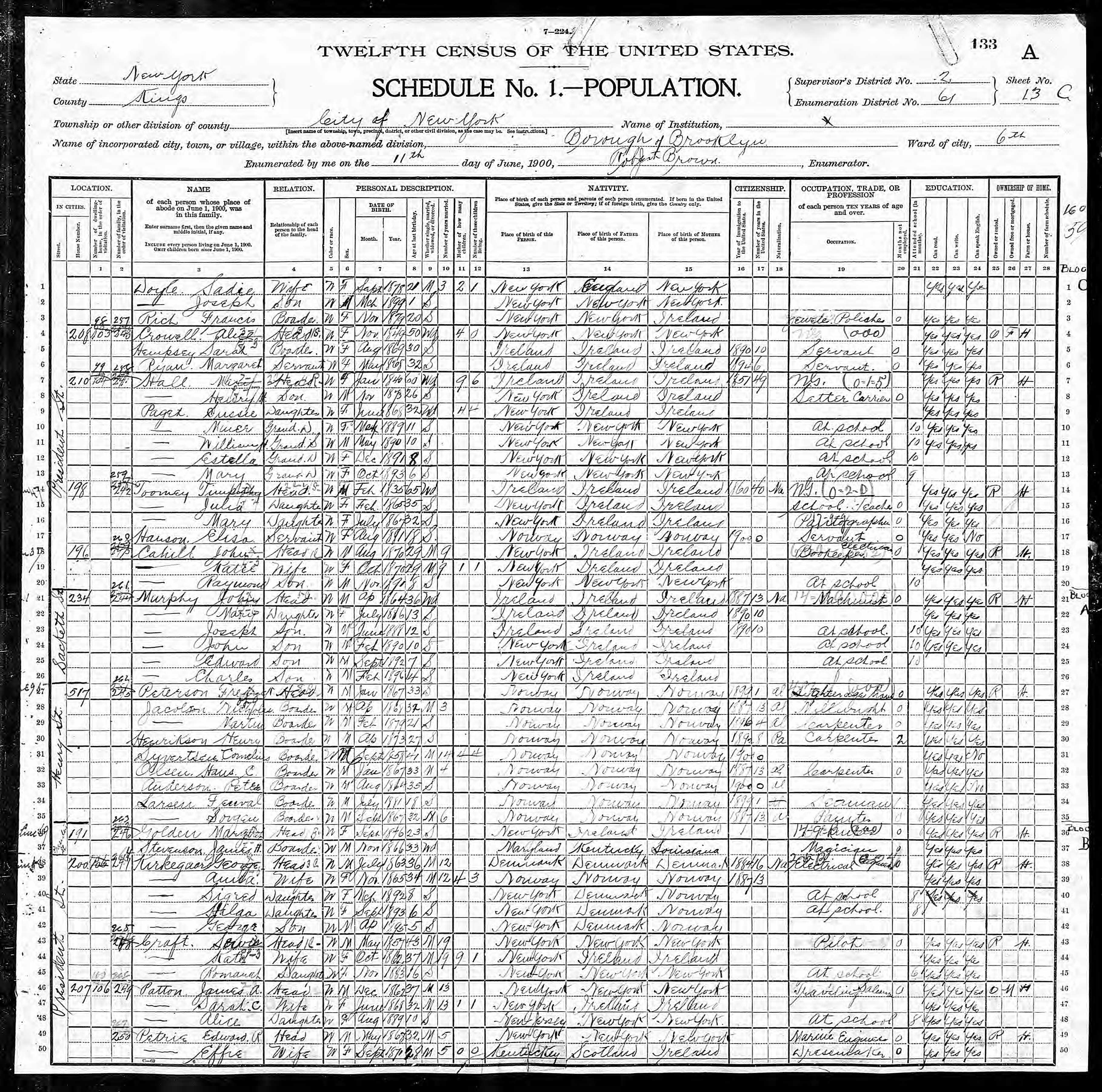 Census 1900 US-NY Kirkegaard, George
