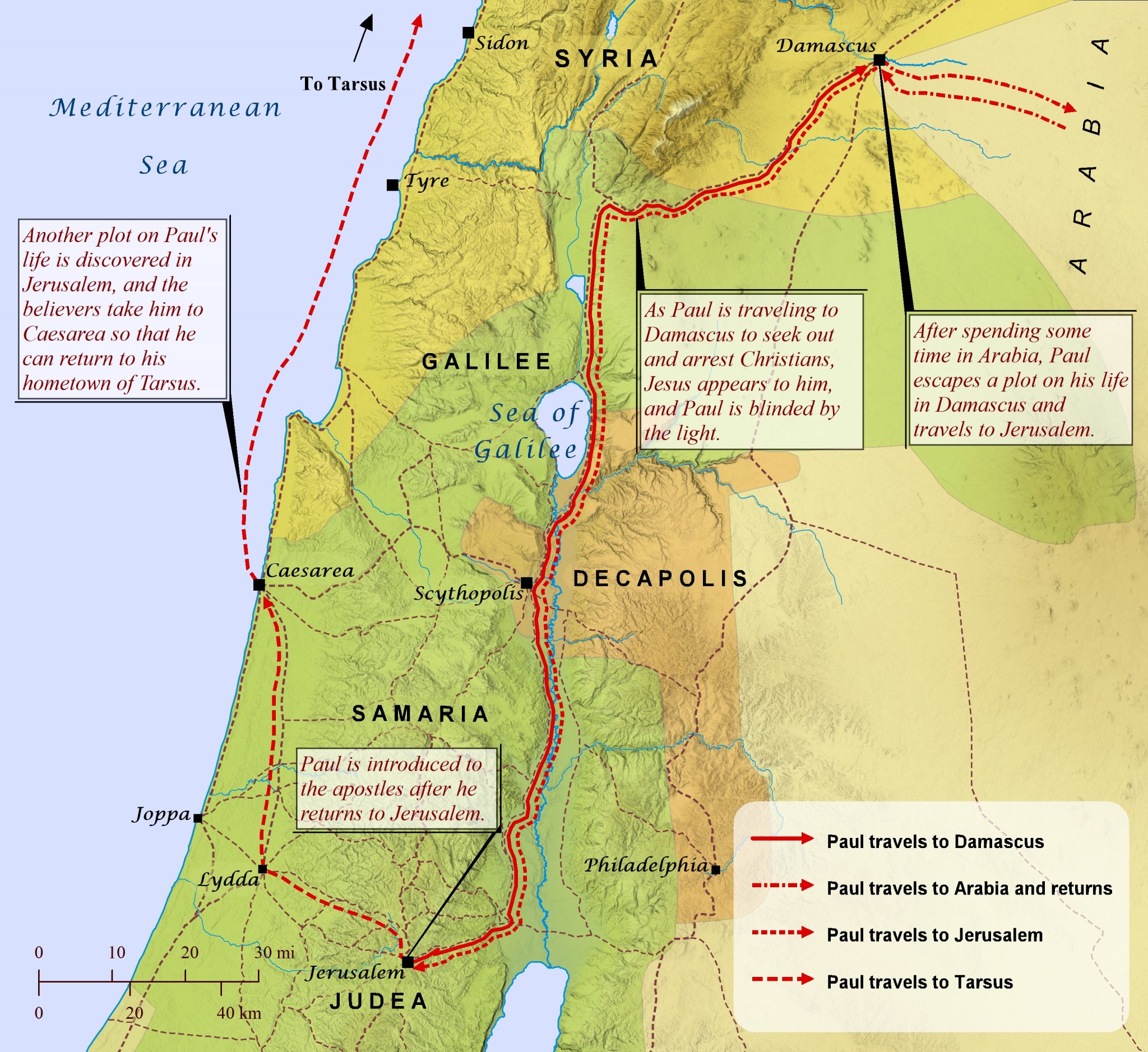 c 37 AD Saul's Conversion Jerusalem, Damascus, Caesarea and Tarsus |  Paul's Travels around his conversion Used with permission from biblemapper.com |