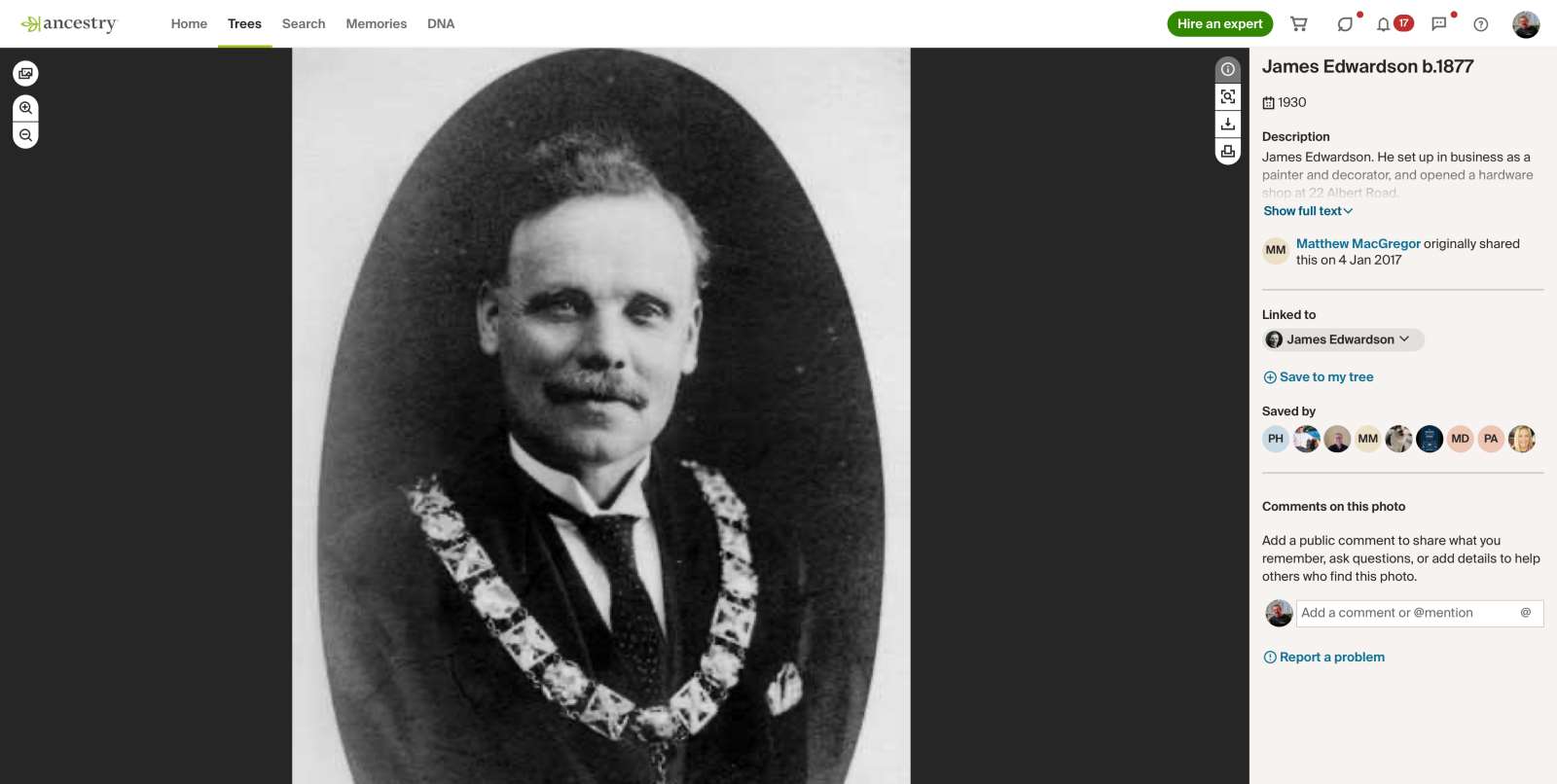| Consanguinity | Partner of James Edwardson (5th great-uncle of Adrian John Snelson) |