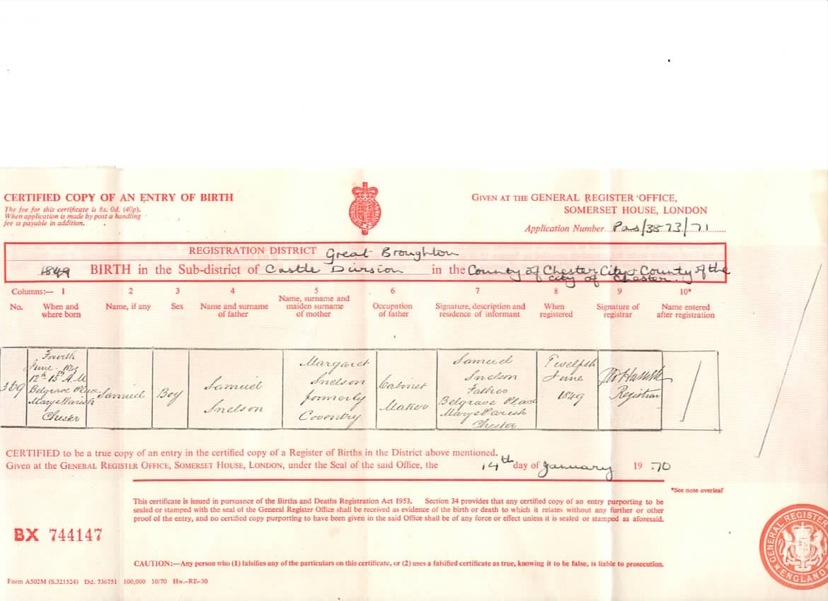 Birth 1849 Samuel Snelson