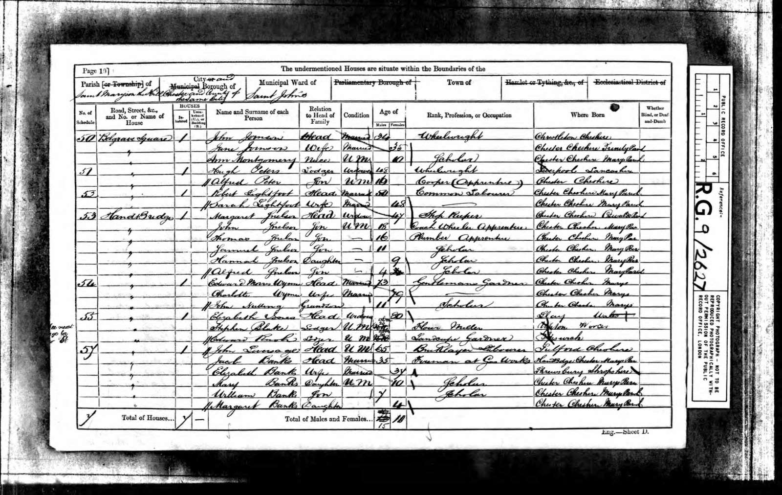 Census 1861 Cheshire Margaret Snelson a. 47