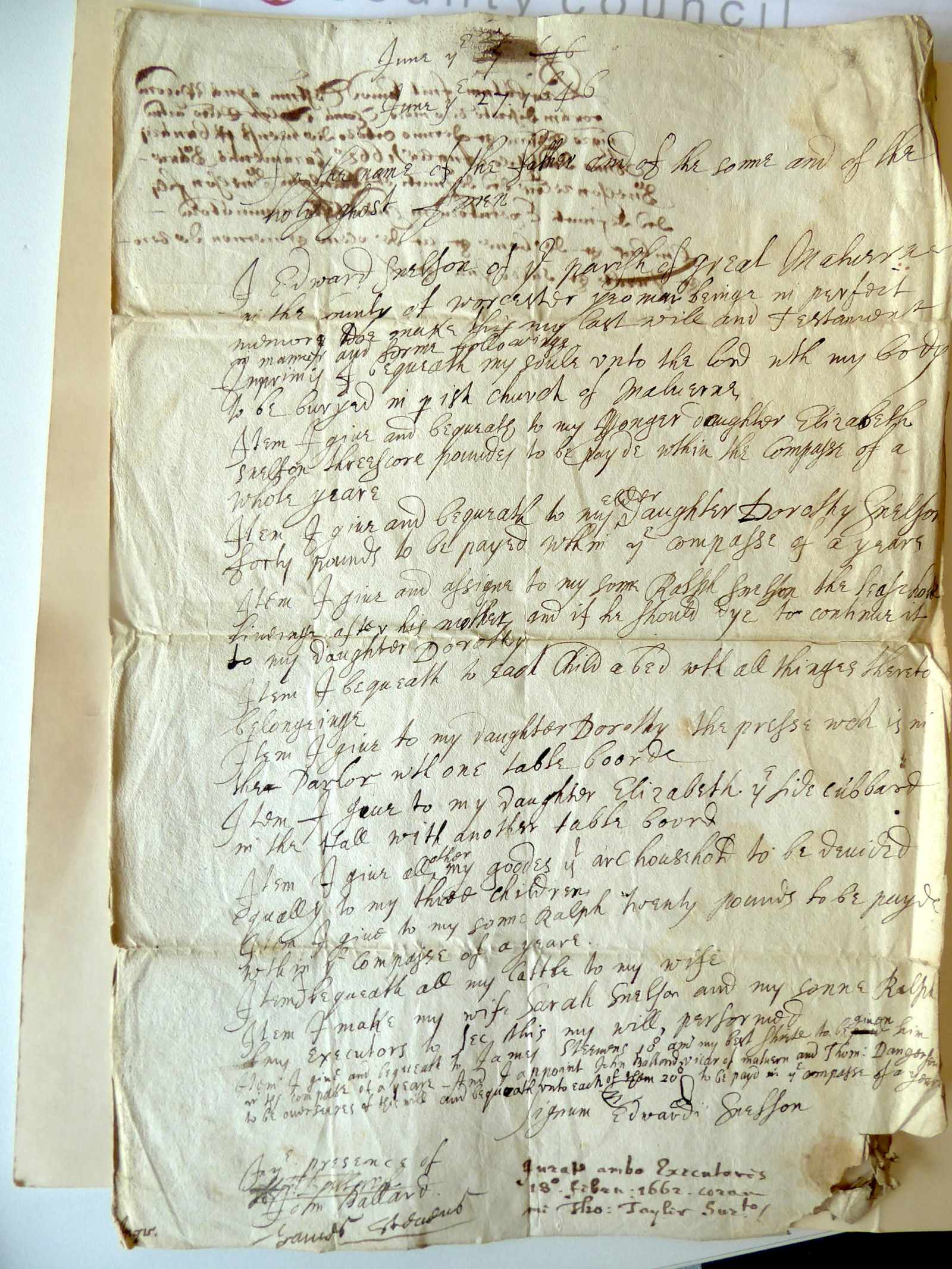 Edward Snelson will 1646 1662