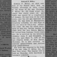 - [S30] Newspaper Obit, Published in Daily Local News Sept 7 1926, Chester County, Pennsylvania.