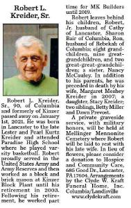 Robert Leroy Kreider married Margaret Meshey.2 Robert Leroy Kreider was born on 14 October 1930.3 He died on 1 January 2021 at age 90.2 He was buried on 13 January 2021 at Mellinger Mennonite Cemetery, Lancaster, Lancaster, Pennsylvania.2