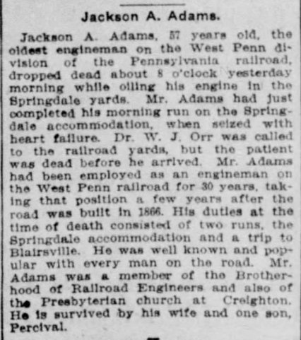 Clipping from Pittsburgh Daily Post May 18 1903 added to Find a Grave by J Nicholson on 29 Feb 2020.