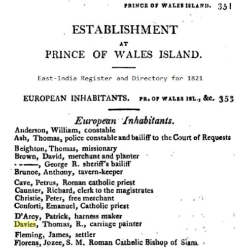 Inhabitants MALACCA, SINGAPORE & PRINCE of WALES Island: