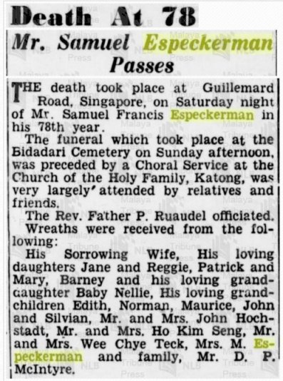 In voornoemd overlijdensbericht worden zijn zoon Barney en kleindochter Nellie vermeld. Haar moeder is Nellie Johanna van den Berg (1898-1935) dochter van Adrianus en Markatie.