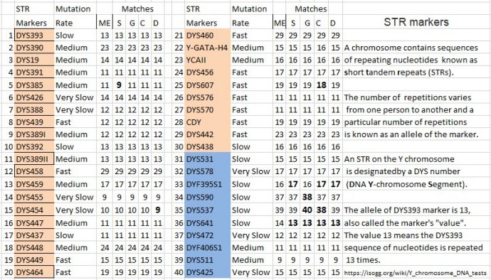 STR markers are used for more recent genealogical testing and comparison, while haplogroups (FGC42045) reach further back in time.