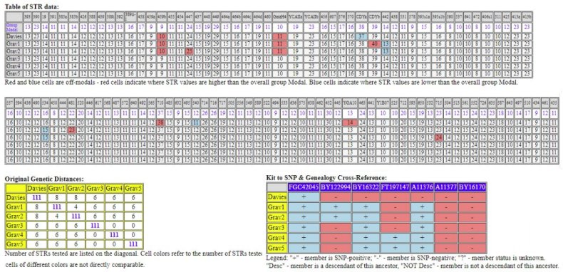 Compare my (above) 111 STR markers with those of testers of the same surname (Gra1-5) and (below) my first 40 STR markers with those of surnameproject members with different surnames.