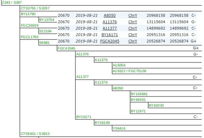 FTDNA Block Tree Haplogroup FGC42045 (my branch).