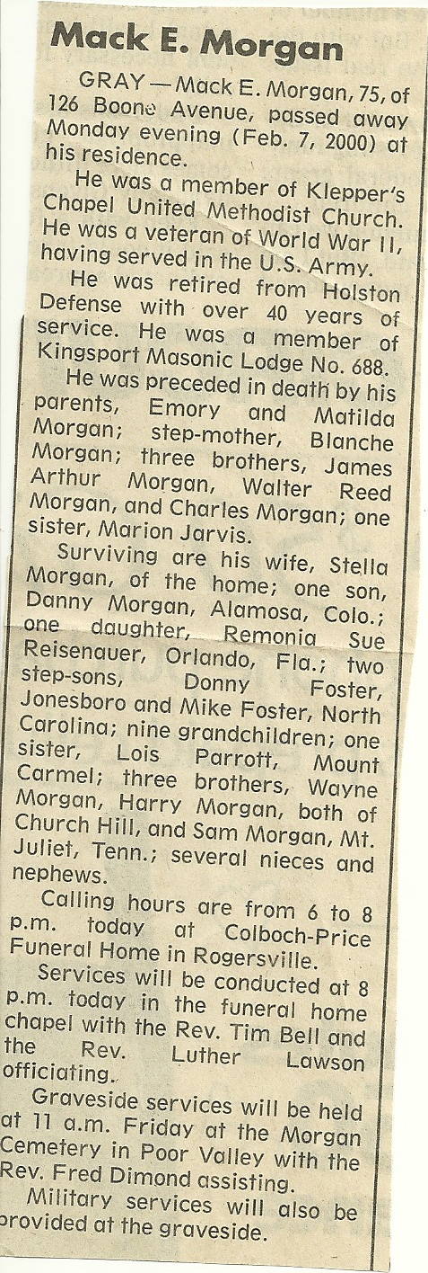 - Father*: Marion Emory Morgan1 b. 20 Feb 1900, d. 9 Jan 1979