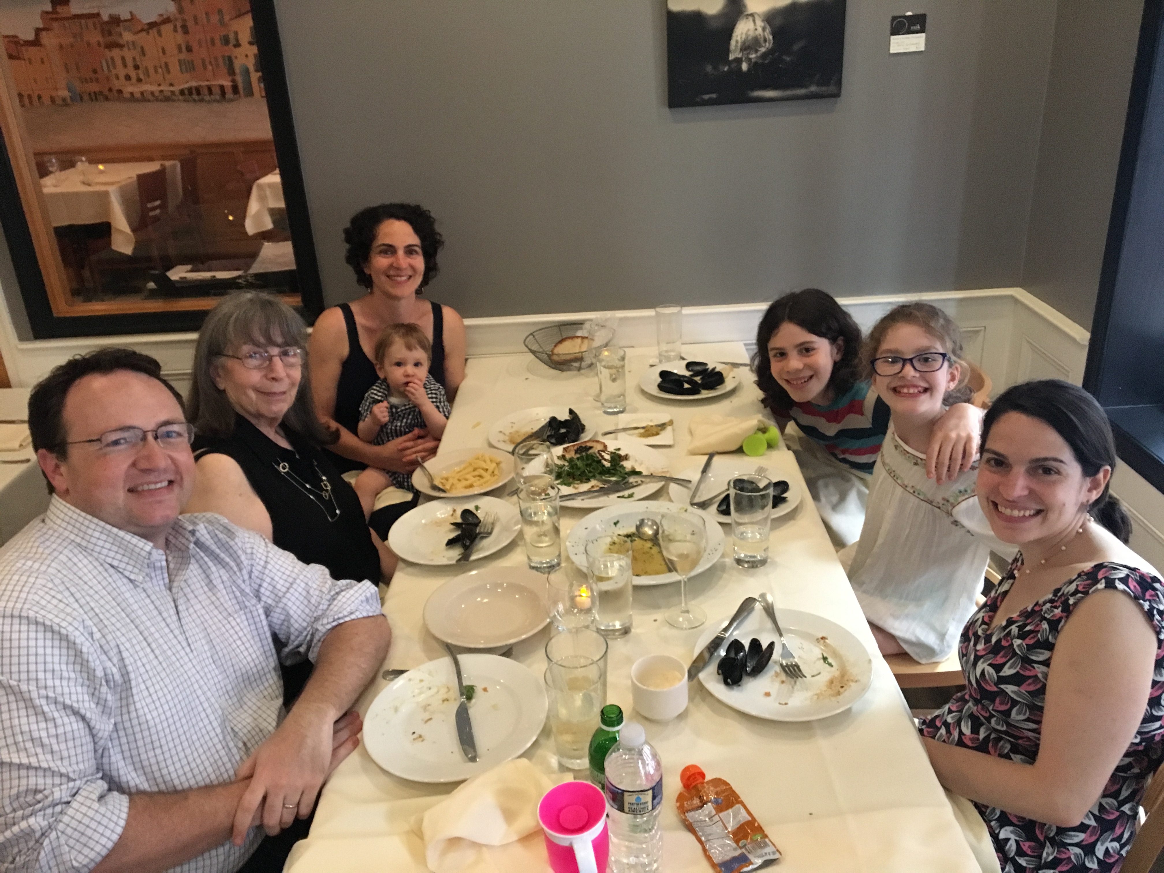 Clockwise from lower left: Josh McNeil, Nancy Greenberg, Jennifer Greenberg(Caleb McNeil on lap), Finn Brenner, Violet Brenner, Susanna Greenberg