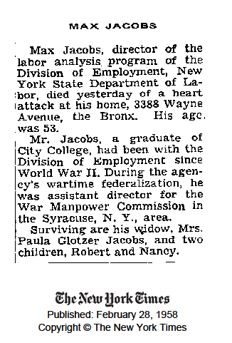 Dad's obituary, 28 Feb. 1958