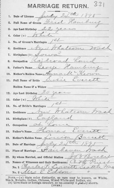 Hamburg, Fred m. Susie Everett 1895