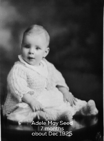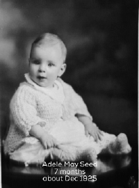- [S412] Photographs viewed with Uncle Mac and Mom in 1995. B&W Photograph, scanned in Dec 1995, Uncle Mac Summach's Photo Archive digitized by Rick Moffat, MAC095 " Adele May Seed, aged 7 months"