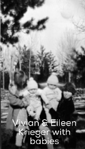 - [S412] Photographs viewed with Uncle Mac and Mom in 1995. B&W Photograph, These photographs were kept by Grandpa Fred Summach. They passed to Muriel Seymour on his death, and to Mac Summach on her passing. Uncle Mac had a battered old suitcase containing a badly worn photo album which may have been his mother's, as well as many loose photos. These are now in the possession of Colleen, Cheryl and possibly others. (2016), Uncle Mac Summach's Photo Archive digitized by Rick Moffat (Mesa, Maricopa County, Arizona, USA), MAC088 - "Eileen, Vivian Krieger and the babies"