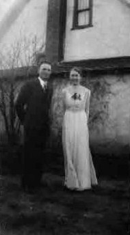 She told me about taking the train to Regina for their honeymoon and using their wedding money to buy and ship home some 2nd hand furniture. They started their married life in what was know of as the Old Cunningham place. It was cold and small. It had not been lived in for several years before they moved in and they found families of mice had taken over the attic. The old house was the scene of one of her most dramatic stories, a skunk got into the house and Uncle Elmer shot it, in the house. They lived with that smell every time it rained for many years. She also told of her shock when she found a mouse floating on the top of her cream that she had planned to send to town to the Carlyle Creamery. I think the pigs ate well that night. It was not until 1952 that they built and moved into a new house.