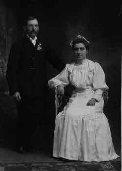Say about 1900. - [S412] Photographs viewed with Uncle Mac and Mom in 1995. B&W Photograph, scanned in Dec 1995, Uncle Mac Summach's Photo Archive digitized by Rick Moffat, Mac035 -- Minnie & Sam Denzin Wedding picture.