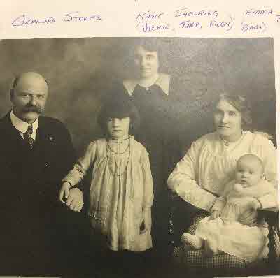 Back row: Victor Stokes, Kate Shewring/Stoakes, Emma; Front - tentatively identified as Vickie, so baby could be Tena