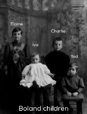 In circa 1911, Iva Boland was included in a group photograph of Charlie, Elaine, Ted and Iva.10