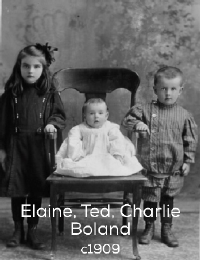 In circa 1909, Ted Boland was included in a group photograph of Elaine, infant Ted in a chair and Charlie.8