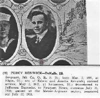 - [S3481] "Millitary Records", Archive Ref R4; Joiner History Room Home Page; Sycamore, DeKalb County, Illinois, USA, Renwick , Percy J. Hereinafter cited as "Soldiers & Sailors of DeKalb - Renwick, Percy J."
