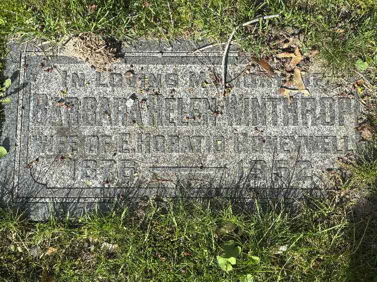 Barbara Helen Lees Winthrope was buried on 23 January 1952 at Pinecrest Cemetery - Section D (aka Merivale), Ottawa, Nepean Twp., Ottawa West of the Rideau, Ontario Canada.2,7,6Gravemarker photo courtesy of Nori-Lyn Alford taken 13 May 2025: Barbara Helen Honeywell née Winthrop
