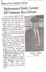 He was was awarded One Million Miles plaque and pocket watch on 1952. at Albany, Dougherty County, Georgia.14 He was was awarded Two Million Miles Plaque by National Trailways Bus System. on 1968. at Albany, Dougherty County, Georgia.14