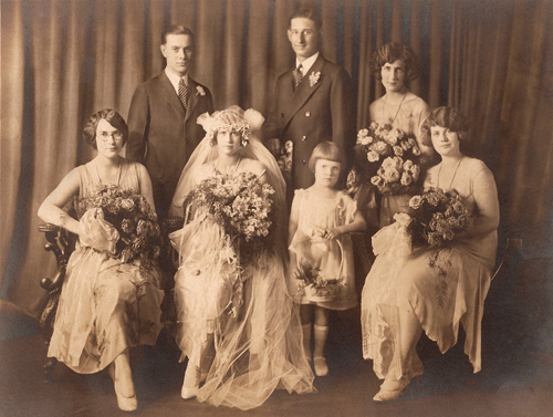 (Trevorrow) Dobbeck wedding party, about 1925. Albert is in the middle back, and Gladys is second from the left in front. In back on the left is Albert's brother