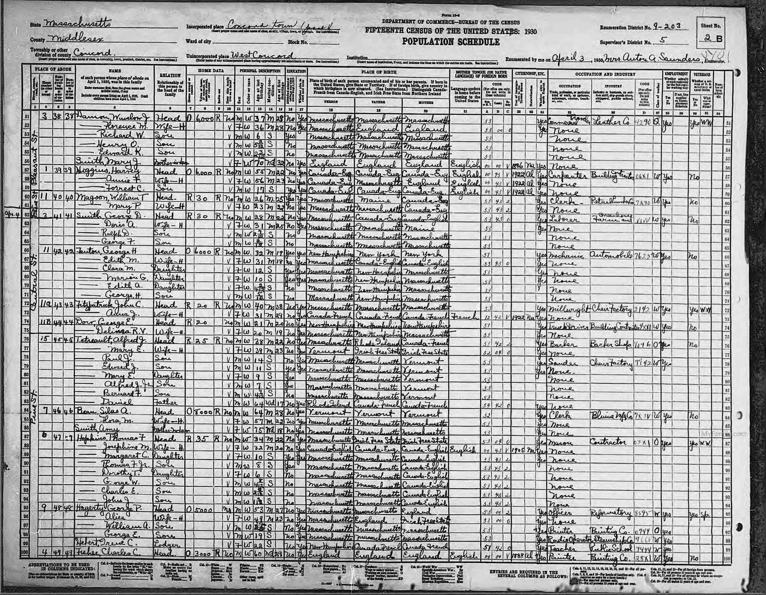 1930 Census, Winslow Damon