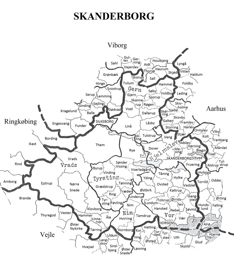 Skanderborg County Denmark was the daughter of Denmark, Europe.1 Skanderborg County was disolved on 1 April 1970 becoming Aarhus County.1