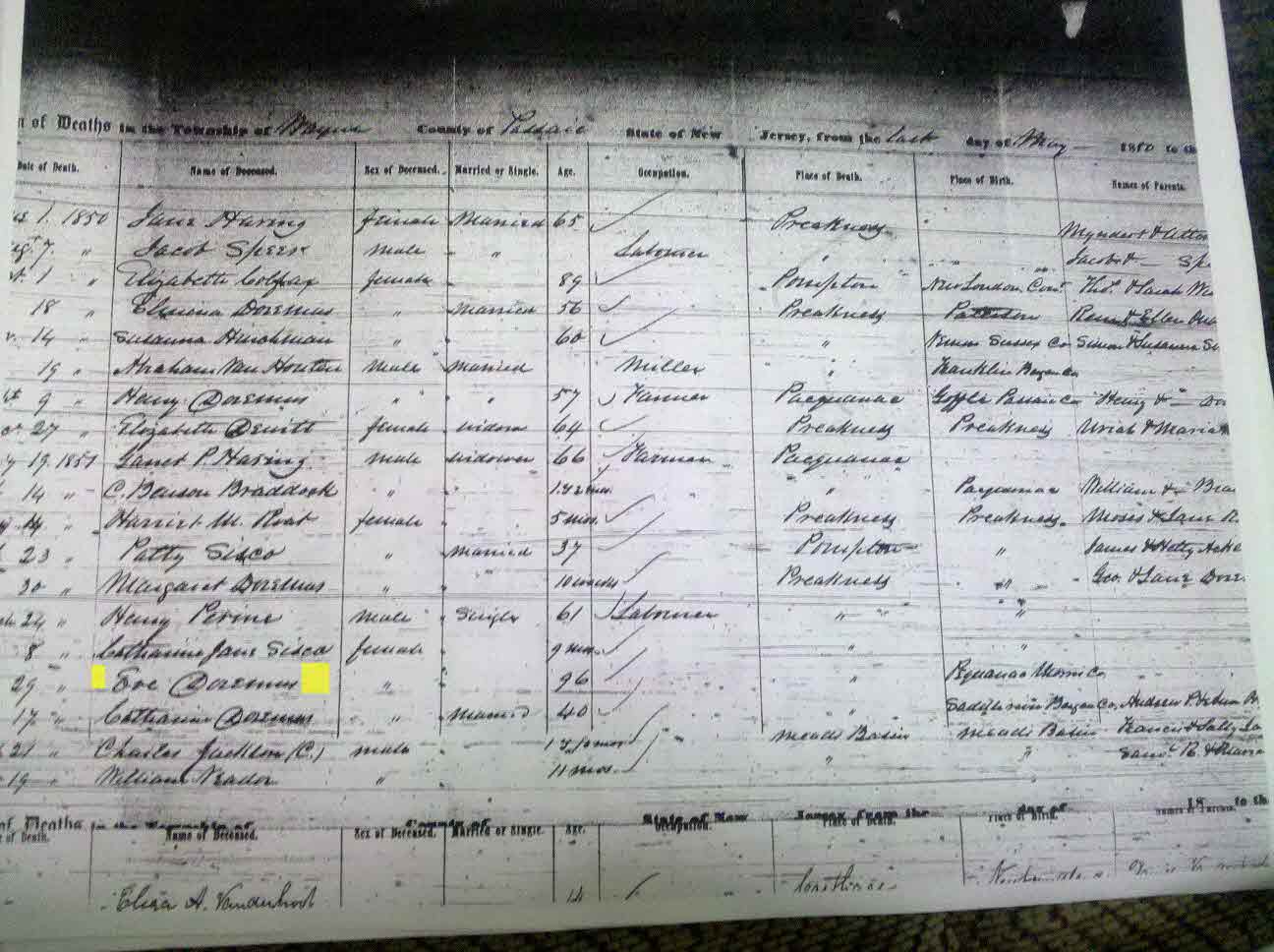 Eve Doremus Death Certificate