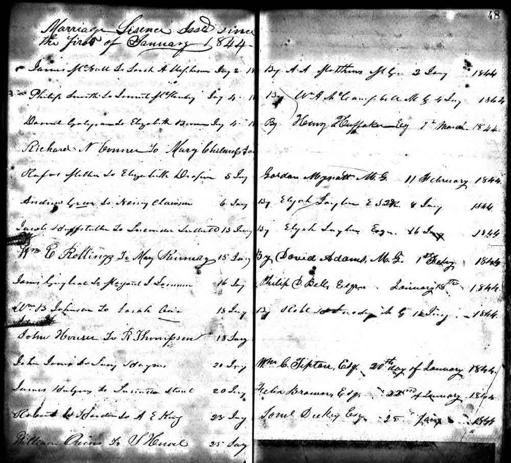 Daniel Galyean and Elizabeth Brown marriage record