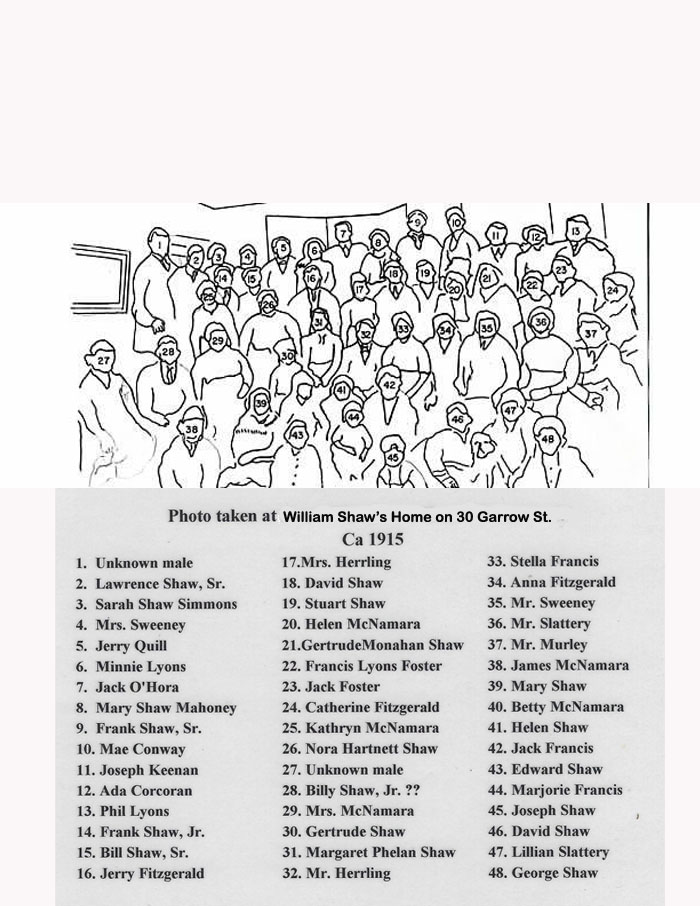 Legend of Block Party Photo. Identification of individuals made by Nora Conray, a neighbor of Frank Shaw. IDs made ca 1985