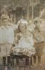 Date of picture unknown, but photographer was at the address on back of photograph from 1892 to 1905. Possibly the woman between Lawrence and Frank in the bac krow may be Elizabeth Campion Shaw, his wife who died in 1896. Their son, Lawrence was born in 1893, so the picture may have been taken in 1892. The children in the photograph are probably siblings of Lawrence and Frank Shaw and children of Frank and Elizabeth Dougherty Shaw.