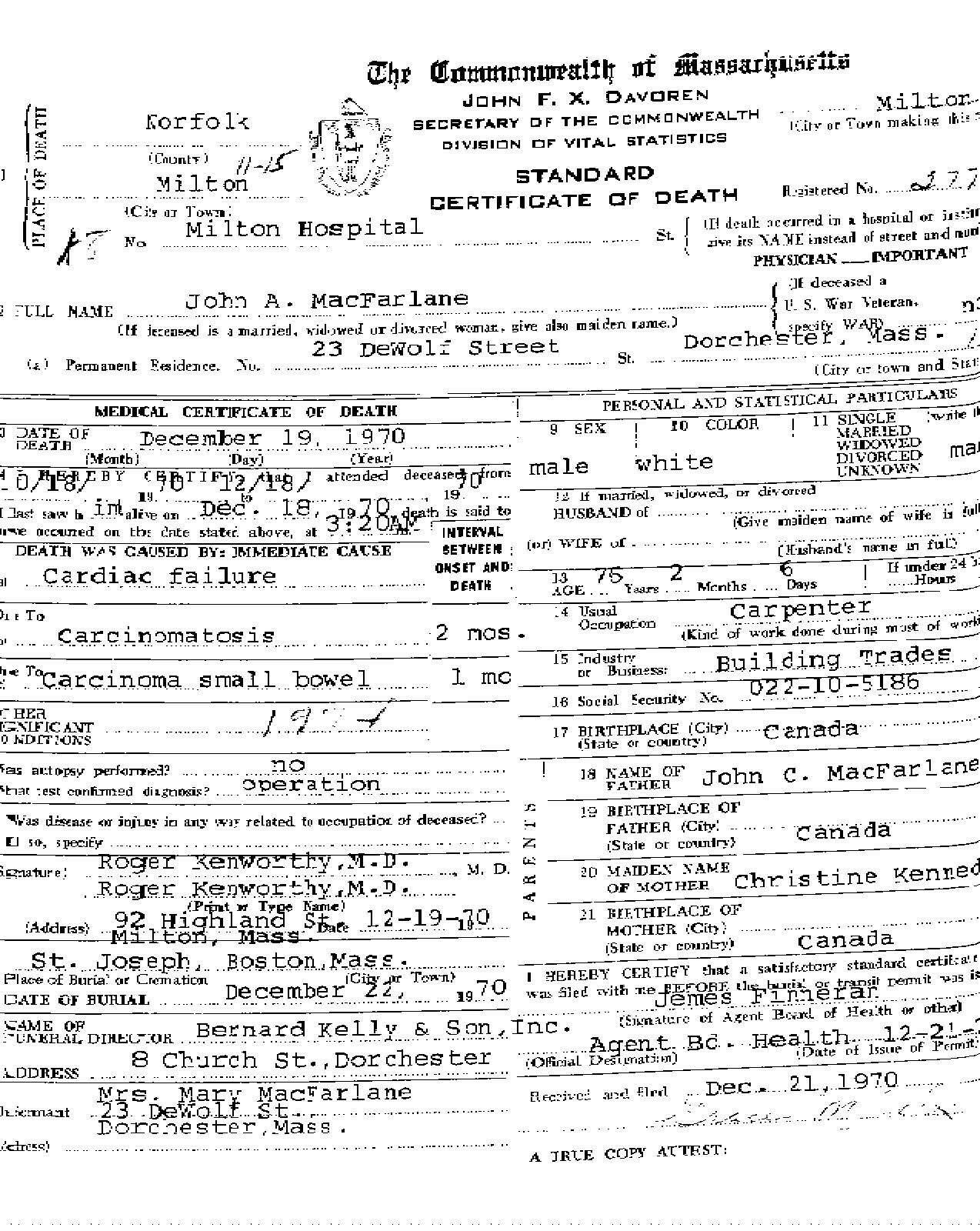 The Ancestors and Descendants of Dougald MacFarlane & Margaret MacDonnell