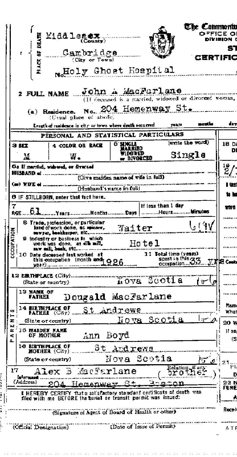 The Ancestors and Descendants of Dougald MacFarlane & Margaret MacDonnell