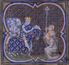 Louis VII receiving clergymen, from a late medieval manuscript.