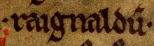 Although most scholars regard Ragnall's cousin as the Hebridean-king who assisted the King of Scots against Haraldr, several points have been raised which may suggest that it was actually Ragnall. For example, the saga makes the erroneous statement that the Hebridean-king in question was a son of Ingibjörg, who is much more likely to have been Ragnall's maternal-grandmother than Rögnvaldr's; in addition, the saga notes that the king's military force was gathered in part from Kintyre, which may be more likely of Ragnall than his cousin, since Ragnall is known to have styled himself dominus Ergile et Kyntyre. Also, until recently, the transcription of Howden's account of the episode has stated that the Hebridean-king was in fact a son of Somairle. However, a recent re-analysis of the earliest existent version of Howden's chronicle has shown that its original text was altered to include Somairle's name, and that it originally read in Latin Reginaldus filius rex de Man, thereby revealing that Rögnvaldr Guðrøðarson was indeed the man in question.