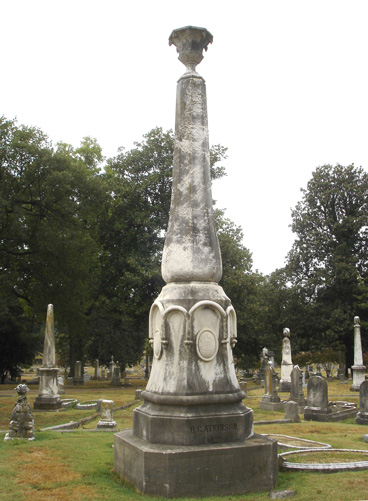 6. [S1283] Q. C. & Sarah E. Atkinson family monument, Elmwood Cemetery, has date and state inscribed on the base of the monument below her name.