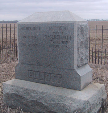12. [S14011] Thos. H.and Betty M. Elliott tombstone, Tuck-Elliott Family Cemetery, shows date.