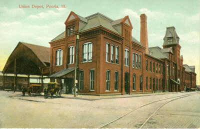 48,49,50,51 Peoria's new Union Depot opened in 1882, and the next year John was listed in the City Directory as a gatekeeper there. He remained in that position until at least 1913. He is listed in 1917 and 1920 as a flagman for P. & P. U. Railway. After having no occupation shown for several years, in 1928 he is listed at a crossing watchman, the last time he is listed with an occupation, apparently retiring at that point.