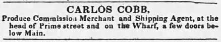 30. [S7755] The Commercial Advertiser Directory of Buffalo, 1852, pg 148, show Cobb & Co. commission merchants and address, both Carlos and Oscar as working for that firm.