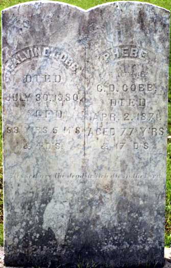 Calvin & Phebe Cobb's Tombstone