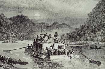 Perhaps the best known and least accurate account was written by Lyon's youngest daughter Elizabeth Ann. In 1855 she wrote that he and some of his children set out from Vermont in early spring 1799, traveled by wagon to Pittsburgh, down the Ohio River, and up the Cumberland to the site of Eddyville. There he decided to stop, she tells us, commenced clearing the cane growing there, and constructed log cabins for the three families in the company and a saw-mill. After preparing materials for his own home and purchasing a large track of land, she says, he returned home in the fall, to set out again shortly with a larger party, arriving in July 1800.1 Many of her details are wrong, as described below, but we should probably forgive her misstatements since she was not born until some five years after these events took place, and wrote her book 50 years after that.