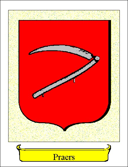 Another family that came with the Conqueror were the Praers. Their arms can be depicted as Gules a Scythe the Blade in Chief the Handle in Bend Sinister Argent.