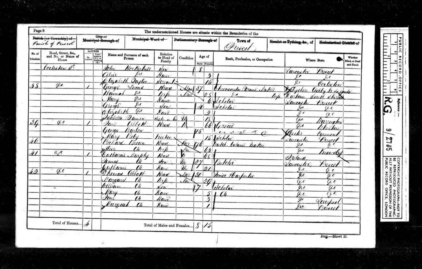 Census 1861 Lancashire Jane Abbott a. 66
